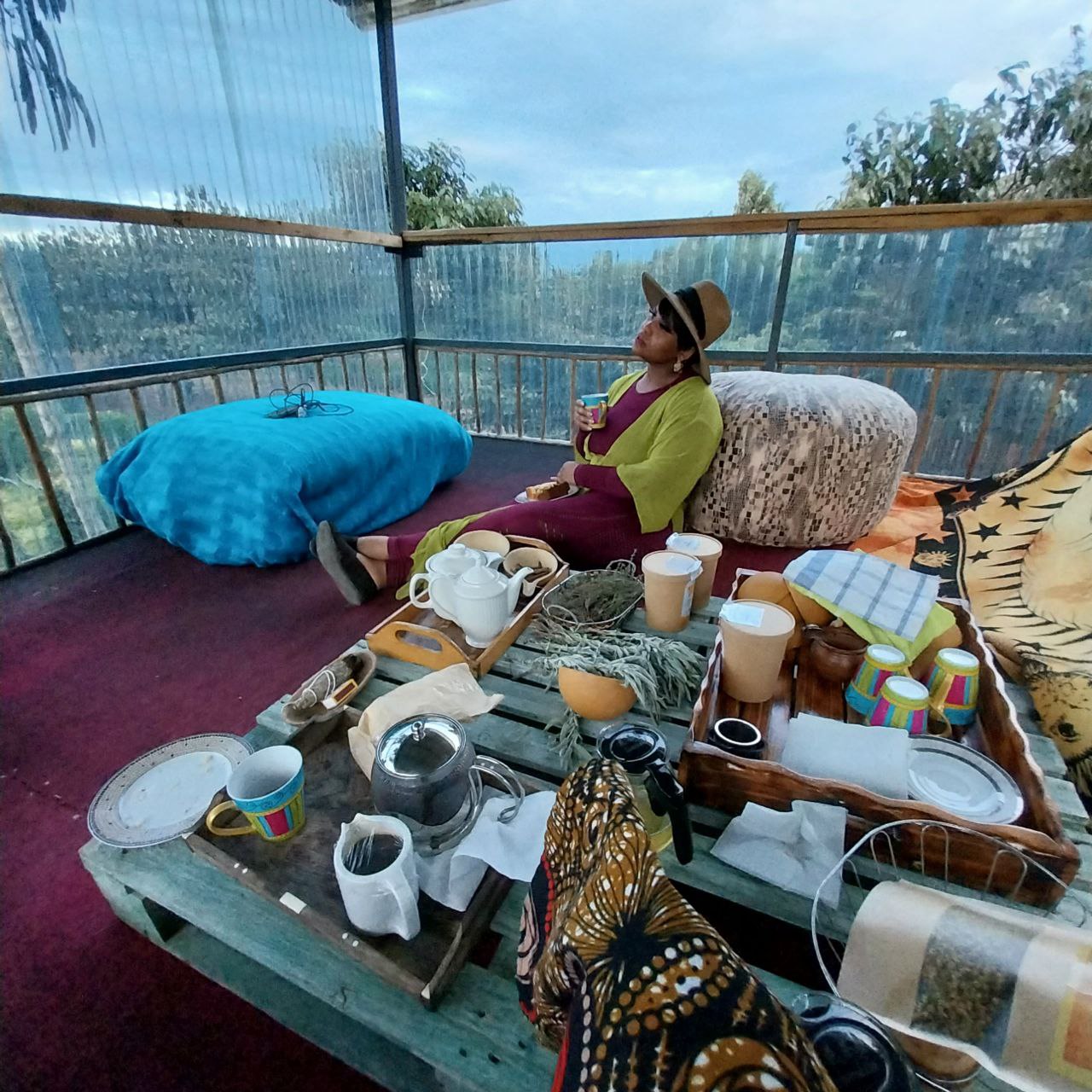 This blend is inspired by the collaboration of Herbal Renaissance with Sweet Waters Eco-Farm, an organic farm and holistic wellness retreat owned by Anne Mwaniki and located in Kenya (East Africa). There is a picture of Anne and also pictures of me in her tea house and looking at her fields of herbs.