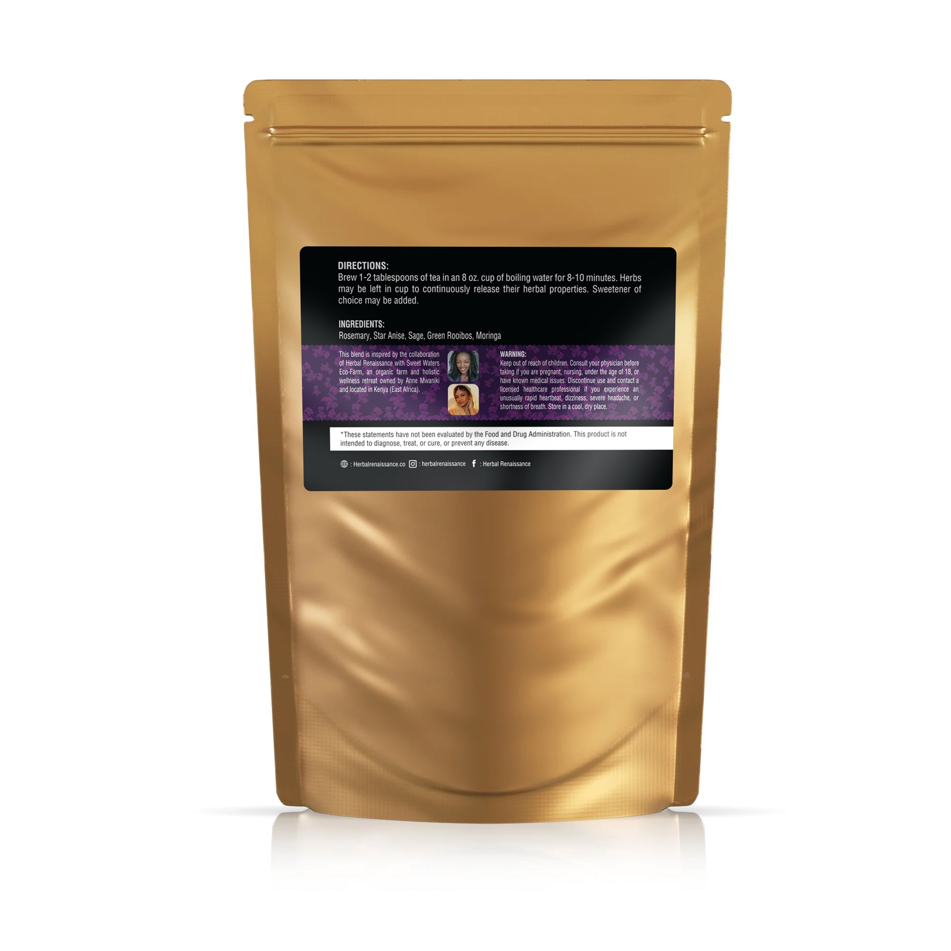 Several herbs are blended to restore memory, cognitive functions, and to nourish the nervous system. These herbs include Rosemary, Sage, Star Anise, Moringa etc…